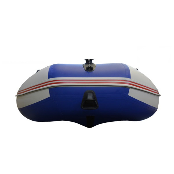 Надувная лодка СТЕЛС 295 изготовлена и ПВХ ткани плотностью 950 гр/м.кв., и представлена в современном дизайне и комбинированном сине/белом цвете. В кормовой части лодки и по бортам установлены ручки для переноски. Они расположены таким образом, что бы с лодкой могли управиться два человека, а при установке транцевых колес и один человек. Ручки по всему периметру оснащены пазами для наматывания веревки или каната.